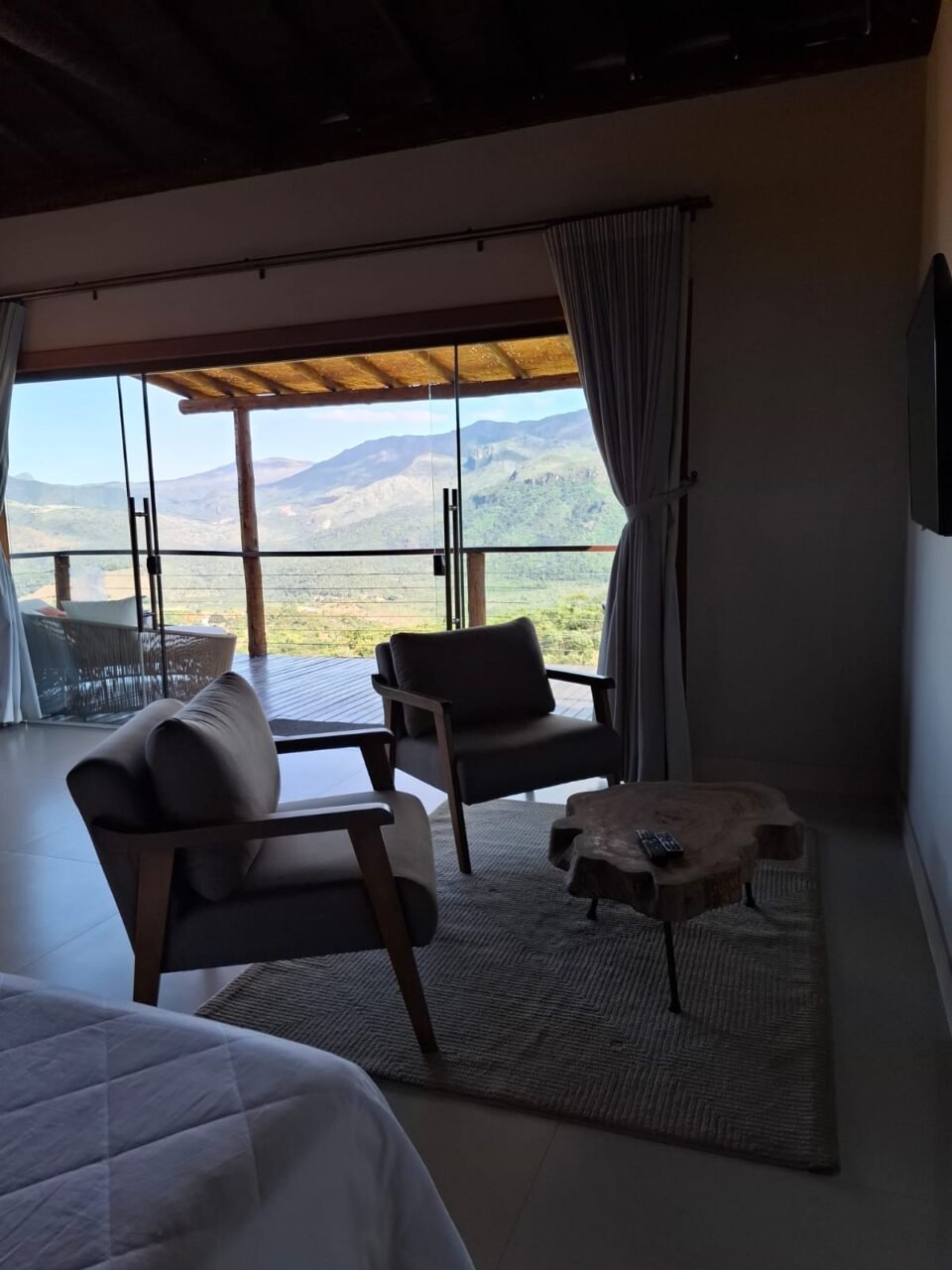 - Sala com Smart/TV 42 polegadas, internet de alta velocidade, TV parabólica, poltronas e mesa de centro.